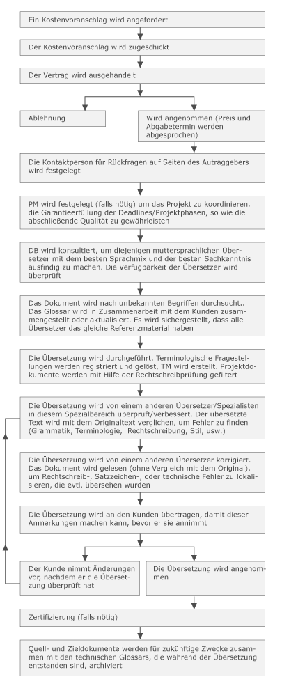 Um sicherzustellen, dass eine Übersetzung höchste Qualitätsstandards erfüllt, hat TLS ein gründliches Qualitätskontrollsystem eingeführt, wie im folgenden aufgeführt: